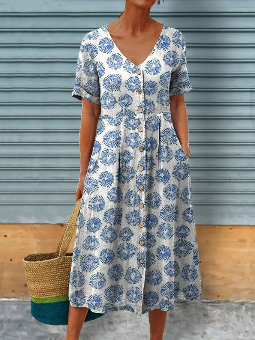 Women's Simple Pattern Linen Pocket Tunic Dress